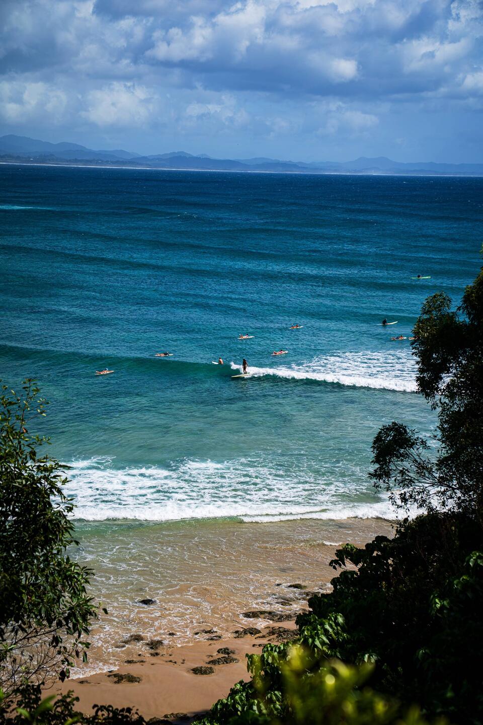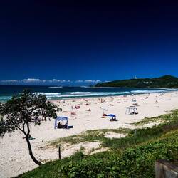 gestern morgen machten wir uns direkt auf den Weg nach Byron Bay. Ein kleiner Ortskern mit netten Cafes und Geschäften direkt am Strand. In den Morgenstunden waren weniger Menschen unterwegs, nur allgegenwärtig waren die Surfer im Meer. Der Strand ist kilometerlang und mit seinem weißen Sand wirklich wunderschön. Er endet in südöstlicher Richtung am Cape Byron, dem östlichsten Punkt Australiens, über dem ein Leuchtturm über die Bucht wacht. Dort hinauf gibt es einen schönen Weg, direkt über dem Meer entlang. Aber nicht nur Surfer nutzten die Wellen, auch eine Gruppe Delfine war zu sehen. Dort angekommen hatten wir einen tollen Blick auf die gesamte Umgebung, bei fast 40 Km/h Windgeschwindigkeiten, musste man aber auch alles am Körper halten. Die dadurch sichtbaren Wellen waren wirklich beeindruckend. Zurück am Main Beach nutzten wir dann die Gelegenheit und warfen uns selbst in die Wellen. Herrlich erfrischend, aber die Strömung nicht zu unterschätzen. Das ging dann auch für eine ganze Zeit gut, bis uns ein ordentlicher Regenschauer jäh unter die Baumgrenze zwang. So machten wir uns auf den Weg zurück zum Camper.