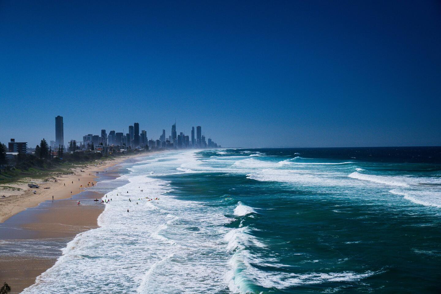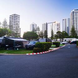 Gestern morgens ging es in Byron Bay noch schnell zum Farmers Market. Leckere Sachen zu wirklich gesalzenen Preisen mit einer Prise Hippieflavour. Dann aber schnell weiter. Goldcoast war unser nächstes Ziel. Gut 2 Stunden entfernt fuhren wir eine ganze Zeit an Villen entlang, die an einem mit dem Meer verbundenen Kanalsystem lagen, davon jede mit eigenem Wasserzugang. Wer da aber denkt, der bauliche "Höhepunkt" sei schon erreicht, kann sich gewahr sein, dass dem nicht so ist. Die Stadt liegt über viele Kilometer direkt am Strand, wer einmal an der Küstenlinie angelangt ist, bekommt eine durchaus beeindruckende Skyline präsentiert. Sehr ähnlich zu Miami in den USA. So gibt es hier auch einen gleichnamigen Stadtteil. Unser Campground liegt in Mitten solcher Hochhäuser, ist aber trotzdem mit einigen Grünanteilen. Wir nutzten direkt den noch jungen Tag und die zeitverschiebungsbedingte gewonnene Stunde und schwangen uns auf Fahrräder. Damit ging es die Küstenlinie hinab in Richtung Burleigh Head Nationalpark. Bei dem uns ein beeindruckender Blick zur Skyline erwartete. Man kann fast durchgängig an der Strandpromenade entlangfahren. Den Weg gen Norden bestritten wir dann mit einem Gewaltmarsch in der Sonne am Strand und landeten schließlich im weltberühmten Surfers Paradise. Da waren zwar keine Surfer, aber viele Touristen am Strand und in den Malls, Restaurants und Bars drumherum. Bei traumhaftem Sonnenuntergangslicht ging es dann zurück zum Campground.