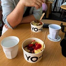 Die Nacht verbrachten wir nochmal in einem Hotel in Sydney. Sehr zentral gelegen, haben wir uns heute Morgen auf den Weg gemacht, ein kulinarisches Highlight und eine „fällige Verabredung“ anzugehen. Ersteres war der neue Fischmarkt in Sydney. Rappelvoll konnte man neben jeglichen frischem Fisch auch fertige Speisen kaufen. Unser absolutes Highlight: Lachssushitacos - einfach wow! Und das morgens um 10. Geschäfte waren Feiertagsbedingt geschlossen, aber nicht unser zweites Ziel: Yo-CHI Frozen Yogurt. 6 mal waren wir insgesamt dort (seit Noosa gab es keine Läden mehr) und werden es wohl vermissen. Nun sitzen wir am Flughafen und lassen unsere Reise Revue passieren. Bis Düsseldorf habe wir auch gute 24 Stunden dafür Zeit.