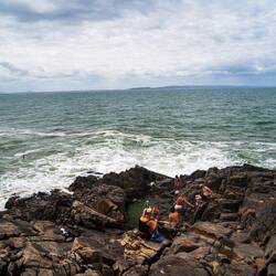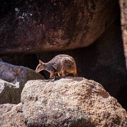 immerhin einen schläfrigen Gesellen zu Gesicht bekamen. Der Weg war ordentlich anstrengend, die Insel aber wunderschön. Beeindruckend ist auch, dass große Teile der Insel reiner Nationalpark undicht erschlossen sind. Mit dem Bus ging es dann wieder in Richtung Airbnb, mit einem Stop bei den sogenannten Rockwallabies. Wie der Name sagt, leben an an einer Landzunge einige Wallabies zwischen Felsen. Wenn auch verboten werden diese immer durch Touristen gefüttert und sind insgesamt sehr zutraulich. Bei Burger und Bier ließen wir den Tag dann im Nomads Hostel ausklingen und verbrachten eine sehr entspannte Nacht in einem richtigen Bett.