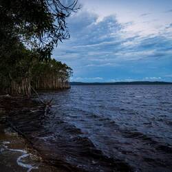 Zum Abend hin ging es dann in unser Camp im Norden der Isel. Besagtes Camp ist in Strandnähe im Wald und mit einem Dingozaun versehen. Es gibt mehrere überdachte Koch und Gemeinschaftsareas für jeweils gut 30 Leute. Darum herum sind immer wieder 6 Doppelzelte unter einer großen Regenplane. Die Toiletten sind mit fließend Wasser und für 2 Dollar kann man sogar duschen. Man hatte uns verschiedene Salate, sowie Grillwaren zur Verfügung gestellt, mit denen wir uns versorgten. Aufgrund der aktuell wohl sehr angespannten Situation mit den Dingos (im Januar ist erst eine 19. jährige im Zusammenhang mit einem Dingoangriff verstorben) war es nicht möglich das Camp nochmal zu verlassen. Ebenso ist es aufgrund von tückischen Strömungen und Haien in direkter Strandnähe nicht möglich im Meer zu schwimmen. So ging es wie immer zeitig ins Bett. Nach einer regnerischen Nacht und bei Charlotte der Angst vor potenziellen 8-beinigen Besucher, ging es auch früh wieder aus den Federn.