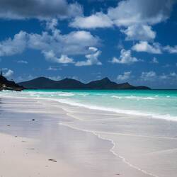 Der nächste Tag begann ernüchternd. Ein Anruf kündigte an, dass unsere gebuchte Segeltour aufgrund eines Motorschadens gecancelt wurde. So waren wir gezwungen online noch schnell eine Alternative zu finden. So starteten wir um 8:15 auf dem lila Katamaran Camira. Skipper Jiggo brachte uns und die gut 70 anderen Passagiere sicher auf dem Weg in Richtung Whitsunday Islands. Dazu gab es direkt auch Kaffee und Crossaints. Erster Stopp nach gut 1,5h war die Bucht der kleinen Dumbell Island. Aufgrund der Quallensaison in Schutzanzügen, konnten wir durch das Korallenriff der Bucht schnorcheln. Das war wirklich toll, Bilder müssen wir aber nachliefern - die schlummern in einer Einwegkamera. Nach dem Ausflug wurden wir dann mit den Worten begrüßt, die Bar sei nun eröffnet - Yey. Weiter ging es in Richtung Whitsunday Island. Dort setzten wir mit dem Tender über und wanderten zuerst zum Hill Inlet Lookout, gefolgt von entspannter Zeit am Whitehaven Beach. Wow! Der Sand schneeweiß und wohl in einer Reinheit, die weltweit ihresgleichen sucht. Zudem wurde Fluch der Karibik 5 hier gedreht. Wiederum an Bord gab es ein großes BBQ Buffet sowie wir uns auf den Weg zurück gen Airlie Beach machten.