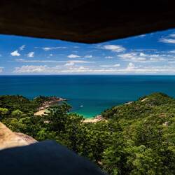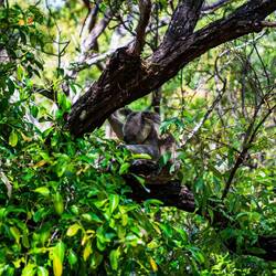 wir grüßen von Magnetic Island. Nach unserer warmen Nacht bei BP waren wir früh wach und machten uns auf dem Weg zum Ferryterminal. Unseren Van konnten wir zum Glück auf einem bewachten Parkplatz abstellen - in Townsville gibt es nämlich einige Probleme mit Einbrüchen in Fahrzeuge. Die Überfahrt an sich ging problemlos von statten und war in 30 Minuten geschafft. Vom Hafen aus wollten wir unser Gepäck im Airbnb platzieren, aufgrund einer Baustelle wurden aus 20 Minuten dann aber 45 Minuten in der prallen Sonne zu Fuß. Naja, kaum geschafft ging es dann wieder los. Mit dem Bus fuhren wir zur Forts Junction. Von dort aus starten mehrere Tracks. Wir wählten einen Rundweg. Dieser verlief entlang von Ruinen aus dem WW2, die man zu dieser Zeit aus Angst vor eine Japanischen Angriff baute. Zudem leben in dieser Gegend ca. 800 wilde Koalas, von denen wir