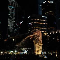 Zum Abendessen haben wir uns um die Ecke in einem Bib gourmand empfohlenen Thailänder beköstigen lassen. Verhältnismäßig günstig und super lecker, sodass wir nochmal einen Verdauungsspaziergang zum Merlion gemacht haben, dem Singapurlöwen als Wasserspeier. Auch hier wurde die Abendliche Stimmung von vielen Touristen vor allem für Fotos genutzt.