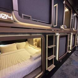 Unser Hostel ist mitten auf dieser Restaurant/Saufmeile aber super ruhig und sauber. Wir schlafen in einem Cube, wirklich mal was anderes, aber wir freuen uns auf ein richtiges Zimmer!