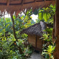 heute gibt’s nur ein kleines Lebenszeichen von uns. Gestern sind wir von Singapur nach Sumatra geflogen. Dabei gab es einen für Touristen obgligatorischen Stop am Wasserfall im Flughafen. Mit Verspätung landeten wir dann in Medan, der drittgrößten Stadt Indonesiens. Vor Ort erwartete uns Dani und fuhr uns nach Bukit Lawang. Für die ca. 90 Km brauchten wir gute 4 Stunden, durch Verkehr und schlechte Straßenverhältnisse bedingt. Angekommen an unserer Unterkunft erwartete uns eine liebevoll gestaltete Lodge mit gutem Essen, zudem spielten Einheimische auf Gitarre und Cajon. Highlight war aber eindeutig unser Zimmer. Eine in den Abhang gezimmerte Hütte, direkt über einem Wasserfall. Vor allem akustisch eine ganz neue Erfahrung.