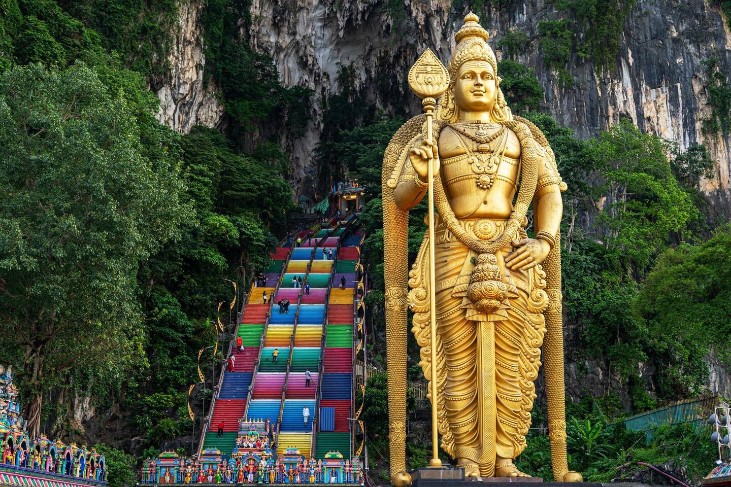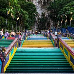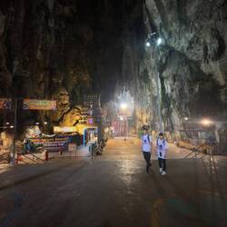 Vorgestern Morgen ging es erstmal früh aus dem Bett und ab in Richtung der Batu Caves. Eine riesige natürliche Höhle im Norden Kuala Lumpurs. Bewacht von einer riesigen goldenen hinduistischen Statue geht es schier endlose Treppen hinauf. Das ganze ist ein hinduistischer Tempel der auch aktiv genutzt wird. Morgens vor allem von Gläubigen besucht, erstürmen ihn nachmittags wohl die Massen. Danach ging’s zum Frühstück gefolgt von weiterem Sightseeing. Letztes Ziel war die Jalan Alor, eine Straße mit unzähligen Essensangeboten im landestypischen Ambiente. Schick anzuschauen aber Essenstechnisch im Verhältnis zu teuer und überbewertet, sodass es zum Essen woanders hin ging. Einziges Highlight dabei aber das Beef Roti eine Chinesisch traditionelles Gericht. Wir suchten uns ein Lokal, voll mit Einheimischen, das war zwar lecker aber auch höllisch scharf!
