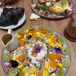 Wir sitzen jetzt am Frühstückstisch und starten gleich auf unseren Trek. Bis morgen!Read more