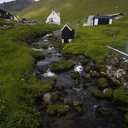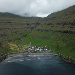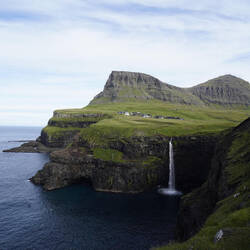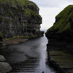 Gjógv liegt an einem Fjord, genauer gesagt an einer Felsspalte, mit einem kleinen natürlichen Hafen. Das Dörfchen hat nur 39 Einwohner und ist sehr abgeschieden.