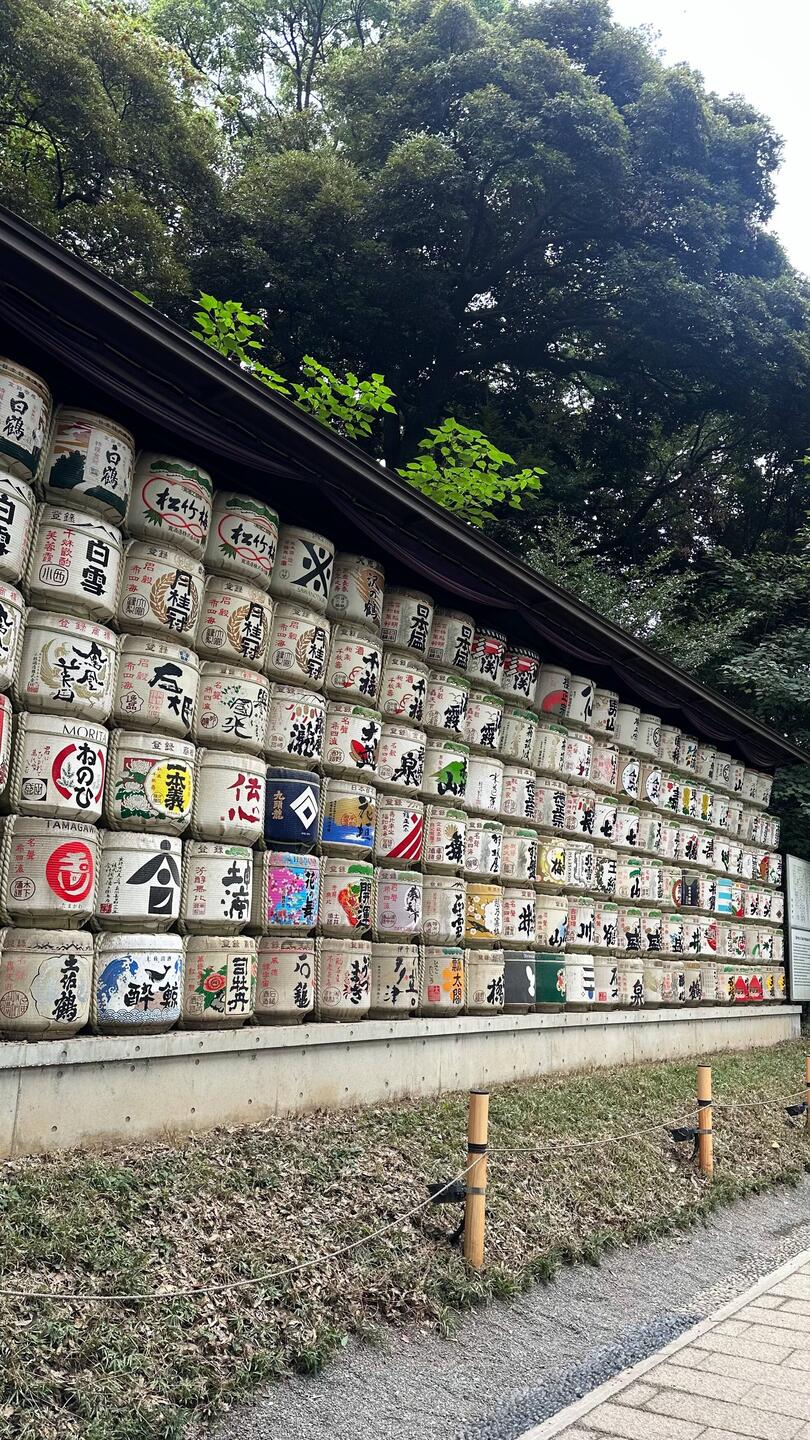 Ein halbstündiger Fußmarsch führte uns zum weitläufigen Yoyogi-Park, der uns schließlich direkt zum Meiji-Jingū-Schrein brachte 🏯