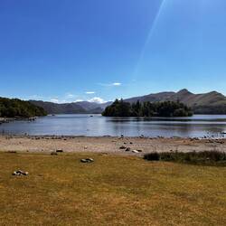 Der Tag ist noch ganz gut und so beschließen wir nach dem Einkauf den Loch Lomond hochzufahren. Der Loch Lomond ist der beliebteste See der Schotten und das merkt man, denn es ist voller und etwas touristischer. Das ist nicht ganz so unseres, allerdings heißt hier "etwas touristischer" auch, dass die Parkplätze mal halb voll sind - jammern auf hohem Niveau 😄