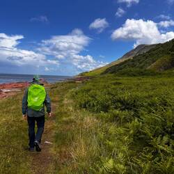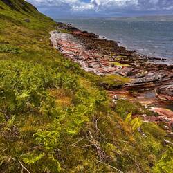Wir starten unsere Wanderung, den North Arran Walk. Das Wetter ist ab jetzt für den Rest unserer Tour sehr gnädig mit uns. Der Wanderweg bietet alles: Schlendern, kleinere Kletterpartien, Pflanzenvielfalt und vom Wetter auch irgendwie etwas von allem. Wir haben den Weg aber sehr genossen und waren zurück am Bus mit ca. 20 Kilometern und etwas über 30.000 Schritten auch geschafft 🫠 Auf unsere Fähre zurück mussten wir aber zuvor noch gute zwei Stunden warten, da sich der Fahrplan durch die Gezeiten geändert hatte.