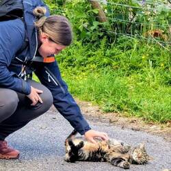 Laut Google Maps gibt es im Ort zwei Werkstätten. Beide fahren wir an und beide sind zu. Sah auch nicht wirklich so aus, als würde dort überhaupt noch was passieren…. Leif möchte dann weiter nördlich zu den nächsten Werkstätten. Damit fühle ich mich aber gar nicht wohl. Probleme mit dem Auto, noch mehr „Berge“ und sich immer weiter vom „Fixen Punkt Fähre“ entfernen (grundsätzlich natürlich toll aber nicht mit kaputtem Auto), geben mir einfach kein gutes Gefühl. Wir fahren also von der geplanten Route ab und durchs Landesinnere nach Lairg zur nächsten Werkstatt. Hier stehen wir vor geschlossenen Toren - mal wieder. Eine Nachbarin sagt, der Besitzer sei gerade zum Lunch. Wir warten also etwas über eine Stunde, erhalten noch Besuch von einer 🐱 und treffen dann den Besitzer an. Er fragt, was los ist und verweist uns weiter —> „Rechts und die zweite Straße links“. Wir sind irritiert. Wir standen scheinbar die ganze Zeit vor der falschen Werkstatt. 🥲