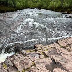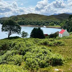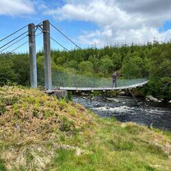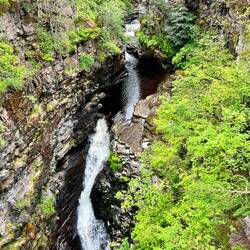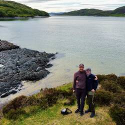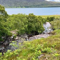 Am nächsten Morgen wandern wir entlang einer Schlucht mit toller Hängebrücke über einem Wasserfall und fuhren nach Ullapool. Das Wetter ist immer noch toll und man konnte sogar mal etwas auf den Steinen sitzen und die Sonne genießen ☀️ Wir beobachten ein Kreuzfahrtschiff 🚢 der Viking und bummeln durch den Ort. Der Einkauf wurde auch gleich erledigt.