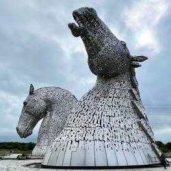 Unser weiterer Weg für uns zu den Kelpies. Die Kelpies sind zwei 30 Meter hohe Pferdekopf-Skulpturen aus Stahl. Sie wiegen jeweils über 300 Tonnen, gehören damit zu den größten Pferdeskulpturen der Welt und verbinden schottische Tradition, Industriegeschichte und Natur. Hier war viel los aber die moderne Kunst war eine schöne Abwechslung.