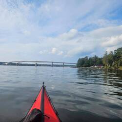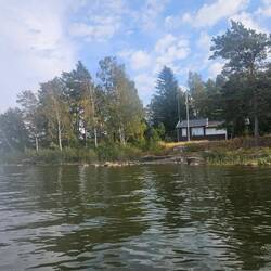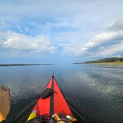 On my last day on the Vänern, once again this big lake showed itself at its best: calm water, little wind! This weather on my trip is really great! This morning there was only a faint haze in the air, no trace of fog, and during the night I could hear the waves subsiding that the wind was changing. So I got off the island without any problems and was able to make my way to Sjötorp. Before that, however, I stopped for lunch in the sunshine in Mariestad and strolled a little through the old town: Sunday afternoon, few people and therefore some things seemed a little bleak... But oh well. I bought myself some potatoes again and am looking forward to eating them! Unfortunately, I haven't managed to buy fresh fish anywhere yet, although I paddled past a few nets, but the fish shops are either just closing for the season or I'm in the wrong place at the wrong time... I'd also like to try a crab. I'm still on the road for a while, so maybe I'll find something after all.