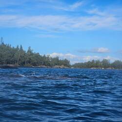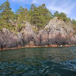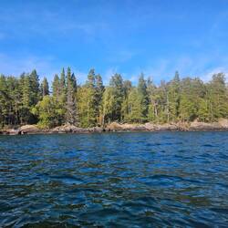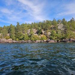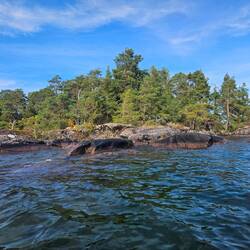 After a dry night in the tent this morning starts with sunshine (just not on my campsite!). During the night I heard the waves and the gurgling and slapping of the water against the rocks and and it didn't sound like the lake had become calmer. Nevertheless, I set off northwards, where a rock shelter was to be my goal... The wind had actually disappeared and the irregular wind waves had turned into a swell, which was not bad outside the lee, but which I managed quite well. I find my way between the islands again and was able to enjoy the interplay of sun and clouds again, as well as the view of the great little islands that I paddled past. At first I had the impression that I was not making any progress at all, but I reached my destination after 27 km in the early afternoon. Once again the question arose whether I should paddle on or not. Since the sun is still shining, so I can charge the power bank and dry everything, and it's supposed to rain from 4 p.m., I'm staying here tonight and can relax and prepare for the rainy day tomorrow... I would like to go to Motala, but I have two shelter options on the way if I don't make it, because there's a thunderstorm forecast for the afternoon.... We'll see! You can never really plan it!