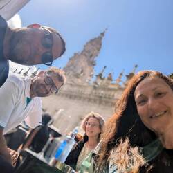 Today we made it to Leon. Sadly it is our last day of walking. We walked 20km today on a great trail that was representative of our trip. We had flat roads, hills , lots of rain, magical forests,Læs mere