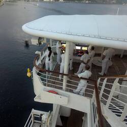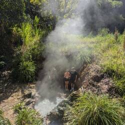 Today we stopped at the beautiful island of Roseau where we swam in the hot springs at the base of one of their nine active volcanoes, tried bush rum and got a VIP tour of the boiling river