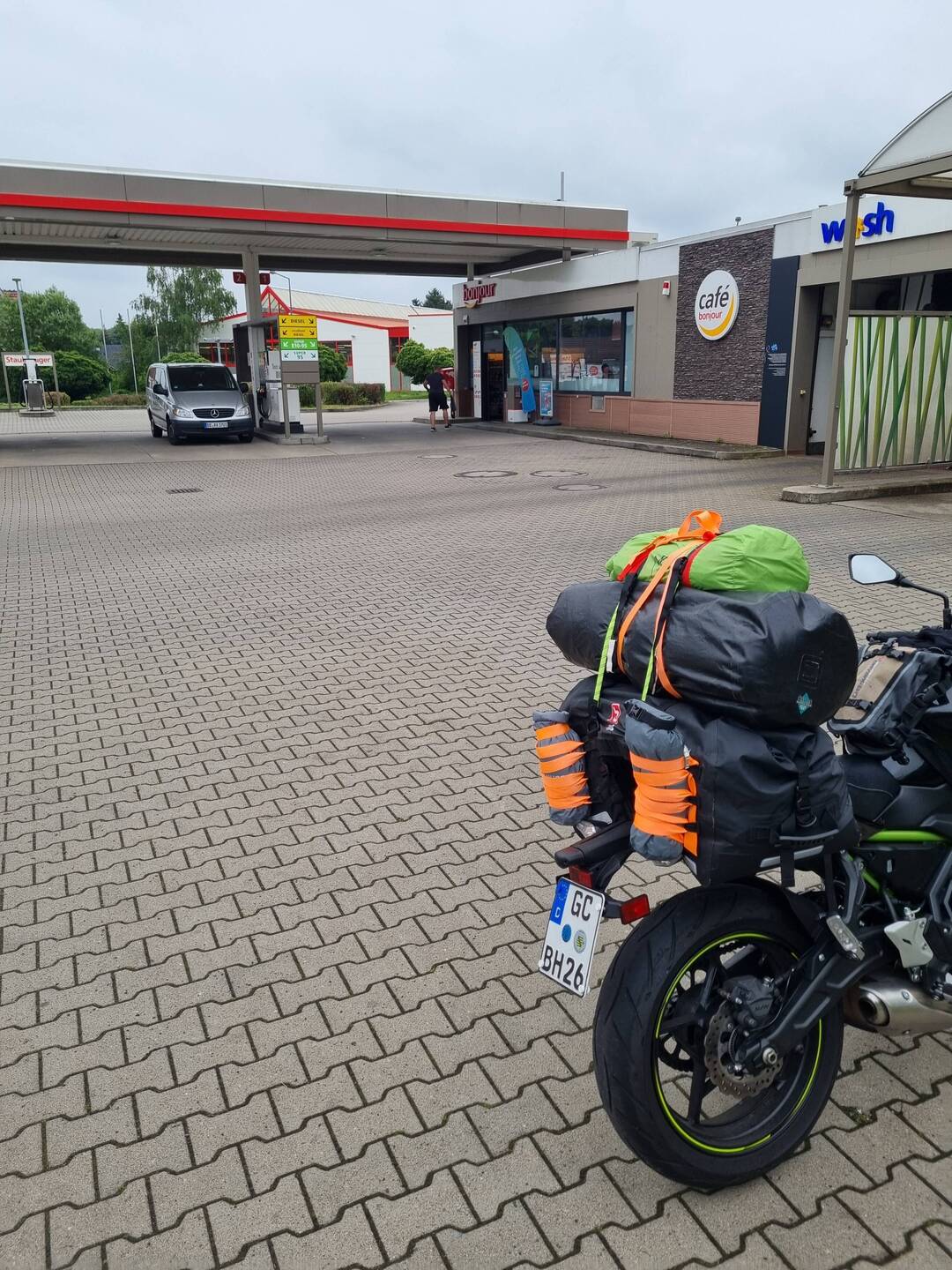 Kurzer Zwischenstopp an einer Tankstelle. Beine vertreten und etwas trinken. Jetzt geht's weiter in Richtung Tschechien.