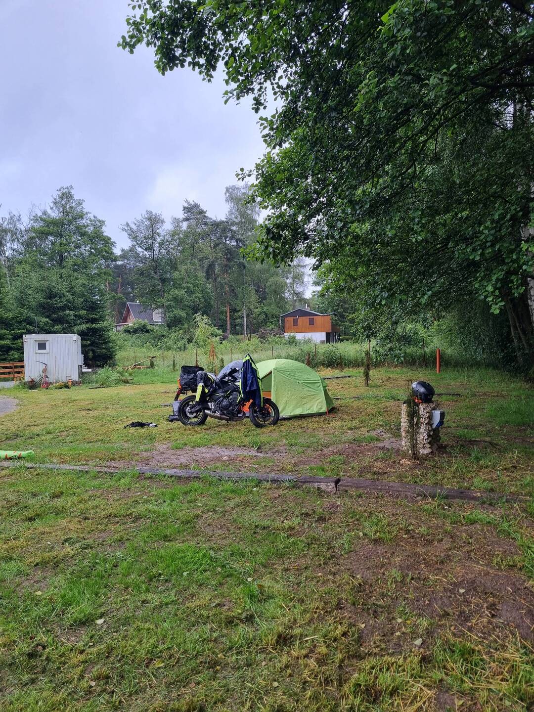 Gut angekommen auf dem Campingplatz Studenec in der Südslowakei. Den ganzen Tag bei schlechtesten Wetter über wunderschöne Straßen mit cooler Landschaft durch Gewitter gefahren und am Abend beiLæs mere