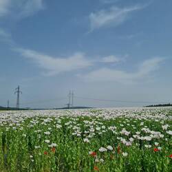 Entlang von Mohnfeldern zur Gondelstation ins Riesengebirge.