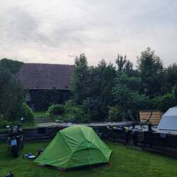 Ziel nördlich der niederen Tatra erreicht. Diesen Campingplatz habe ich ca. 30 min vor Ankunft auf Google gefunden. Ganz klein und süß und wieder mit Pool 😁