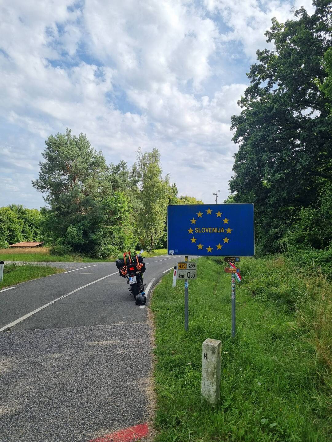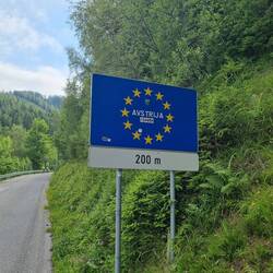 An einem kleinen Grenzübergang in Slowenien angekommen. Jetzt noch 70km bis zum Campingplatz ⛺️
