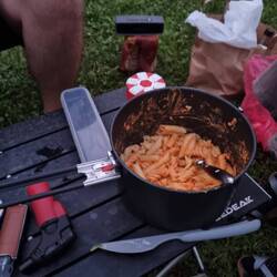 Jetzt noch Zelt aufbauen und den Abend am See genießen.