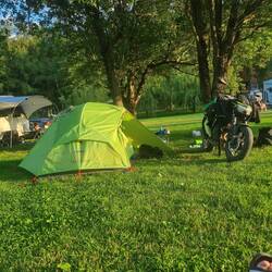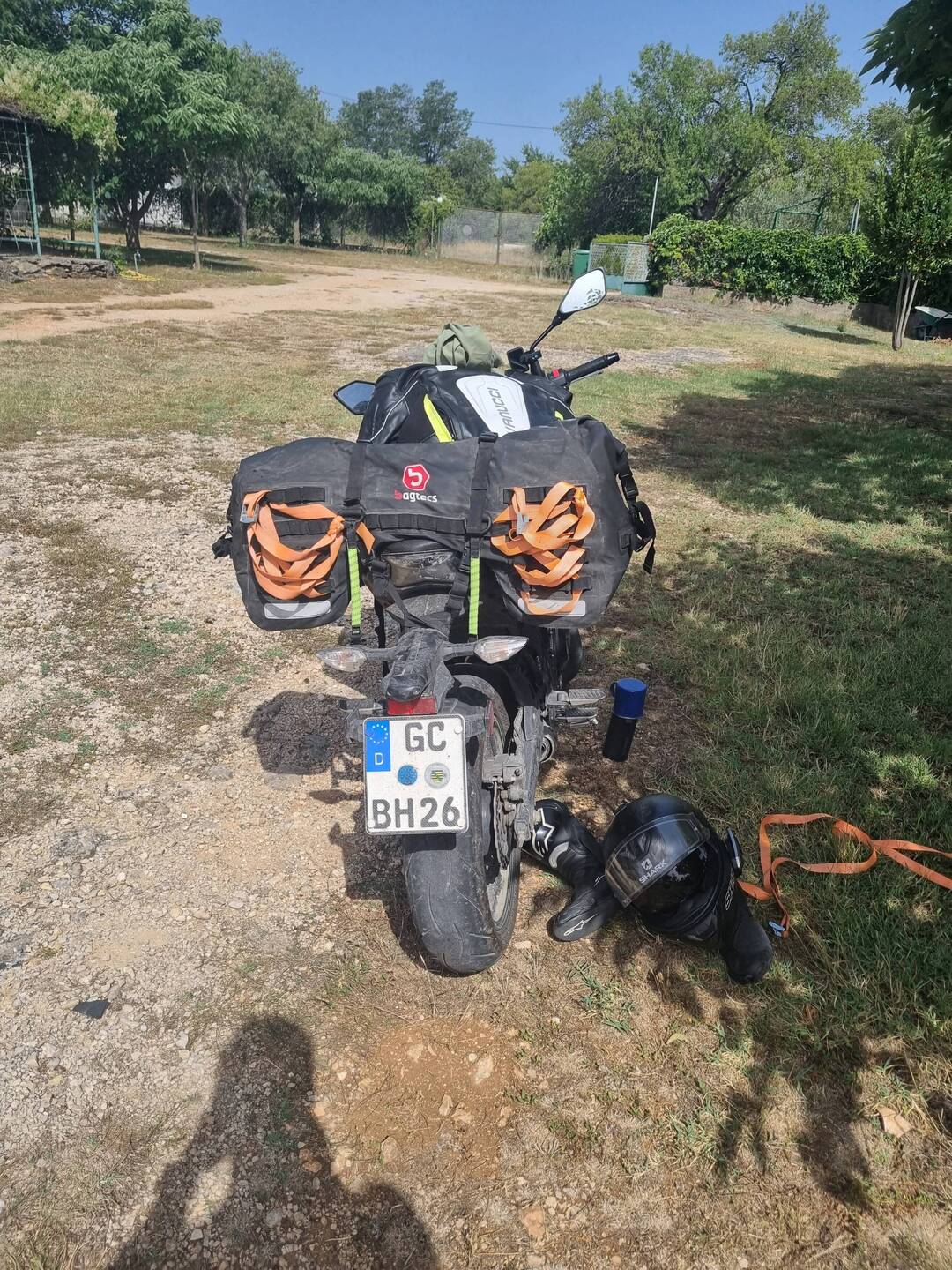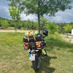 Heute Abend auf einem kleinen Campingplatz nahe der Plitvicer Seen gut angekommen. Nach einem stark verregneten Tag sieht das Motorrad auch dementsprechend aus. (3 von 7 Tagen Regen)