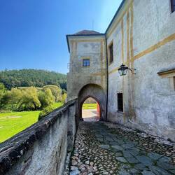 Vom CP ins Dorf zum Kloster Zlatá Koruna (Goldenkron) gewandert