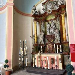 25 Kilometer von der bayerischen und etwa 15 km von der sächsischen Grenze im Egerland in der Ortschaft Chlum Svaté Maří (dt. Maria Kulm) steht die barocke Wallfahrtskirche Maria Kulm.
