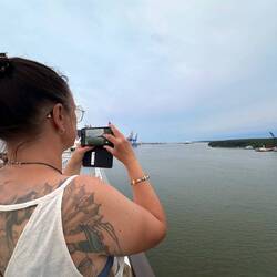 Stehen jetzt an der Fähre und warten , dass wir drauf dürfen , oder besser gesagt, müssen .