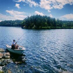 Heut wollen wir es wissen . Ruderboot gemietet , es nieselt , die Männer rudern uns übern See . Und wir wollen endlich den Fisch fangen !