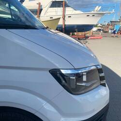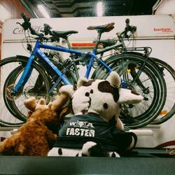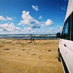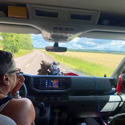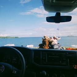 Und Alfred ! Ja der Alfred ist der perfekte Campinghund, okay nachts belagert er alle Sitze , so dass erstmal alles abgesaugt werden. Während der Fahrt jedoch liegt er brav zwischen uns und schläft. Echt eine Seele von Hund .