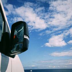16.15 Uhr. Sind jetzt auf der Fähre , keine Ahnung , ob wir auf dem Auto raus mussten oder nicht. Es ging so schnell und ist scheisse eng. Wir haben uns für drinbleiben entschieden . Platzangst ist hier nicht angebracht. Danach erstmal nen Schnaps .Læs mere