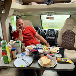 Nun gibts das letzte Frühstück 😋 noch eine Camper-Weisheit, die wir heute von einem eingefleischten Camper lernen durften: Camper sind die einzigen Menschen, die ihre eigene Verwahrlosung als Erholung empfinden 👀😎Læs mere