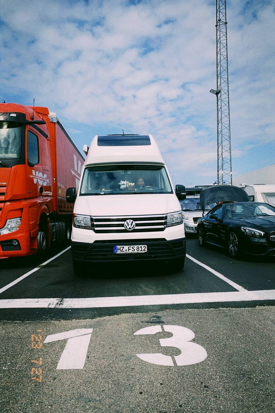 Die erste Fähre haben wir erstmal schön verpasst, dafür stehen wir in der ersten Reihe für die nächste .