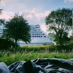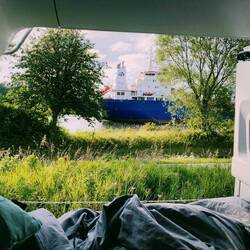 Der letzte Stellplatz für diesen Urlaub. Auf meinen persönlichen Wunsch, ich wollte schon immer mal am Kanal stehen und Schiffe 🛳️ glotzen.