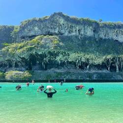 Mardi matin PMT (palmes, masque, tuba) pour observer la vie aquatique, rien de concluant à part ces grosses étoiles de mer rouges et blanches ! Après ça direction le bain de boue d’argile bleue,もっと詳しく