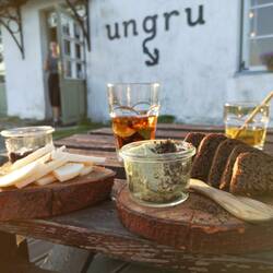 Wir sind heute mit dem Rad rund um Nida unterwegs und erkunden die Gegend. Das Wetter ist toll. Gerade sitzen wir in einer wunderbar angelegten Kneipe mit heimischer, sehr preiswerter Küche.