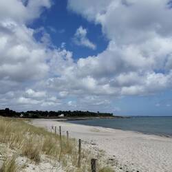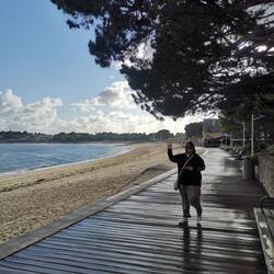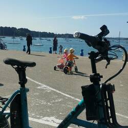 Île-Tudy ist eine kleine Gemeinde mit 700 und irgendwas Einwohnern. Es gibt einen tollen langen Strand und am Wochenende kommen die Sonnenanbeter. Eine kleine Fähre fährt einem für 2€ rüber nach Loctudy, der Fährmann hilft mit sogar mit dem ebike. Die Einstiegshöhen oben ganz schön variieren und auf einmal werden aus 2 gleich 25 Treppenstufen 😀