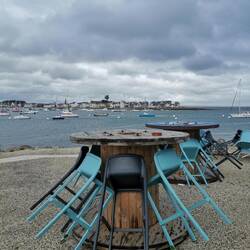 Der Hafen in Loctudy ist nicht mehr in professionellem Betrieb, aber Boote fahren noch. Im café am Hafen lässt es sich aushalten 😍