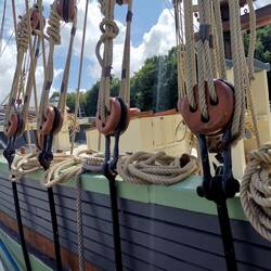 Die engen Verhältnisse des Wartungsschiffes Roi Gradlon haben schon beeindruckt, auch die vielen Leinen des Seglers Anna Rosa, der Fischrogen aus Bergen nach Duanenez für den Sardinenfang lieferte.Read more