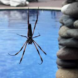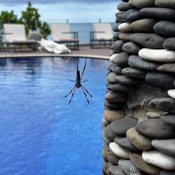 Passend zu unserem heutigen 20. Hochzeitstag hat uns eine Spinne mit ihrem Netz den Eingang zum Pool versperrt. Vermutlich ein Weibchen, das nach der Paarung das Männchen frisst. Mal schauen 👀 wieLæs mere