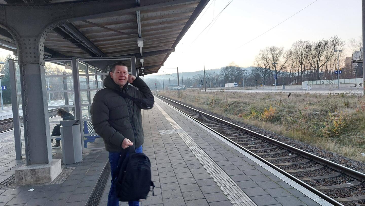 In Flöha treffen wir uns am Bahnhof mit Christoph, Erik, Micha.