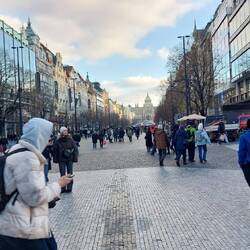 Das Wetter ist uns hold, kalt, jedoch mit Sonne. Und so schlendern wir durch Prag. Wenzelsplatz, Aposteluhr, Oper, Stadtturm liegen auf dem Weg
