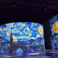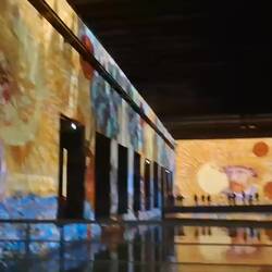 Gemälde und Motive werden animiert als Projektion an die Wände des sonst dunklen Inneren geworfen, tief beeindruckend.