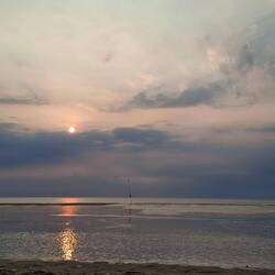Ab Mittag bessert sich das Wetter und wir gehen noch einmal Richtung Strand. Am späten Nachmittag naht Gewitter, zur Vorsicht gehen wir in das Bad auf dem Camping.