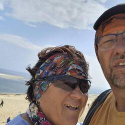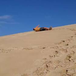 Gegen Mittag wird es dann schöner und wir wandern drei Stunden durch die Düne. Sie ist riesig. Noch ein kühles Bad im Meer, einen heißen Kaffee und alles wird gut. Noch einen Trink und dann steht fest: Wir bleiben noch einen Tag länger...